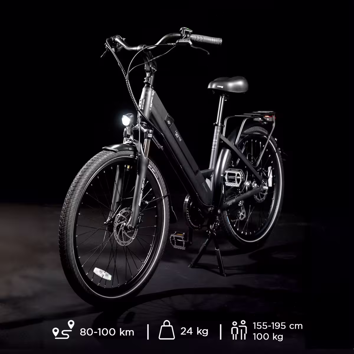 COMPOSANTS HAUT DE GAMME Équipé de feux LED Spanninga Kendo+ intégrés au système électrique, de connecteurs étanches IP-67, d’une poignée tournante Revoshift pour des changements de vitesses fluides, d’un système d’ancrage KlickFix à l’avant pour l’ajout d’accessoires, et d’un porte-bagages arrière conçu pour supporter une charge maximale de 27 kg, sur lequel il est possible d’adapter un siège enfant.