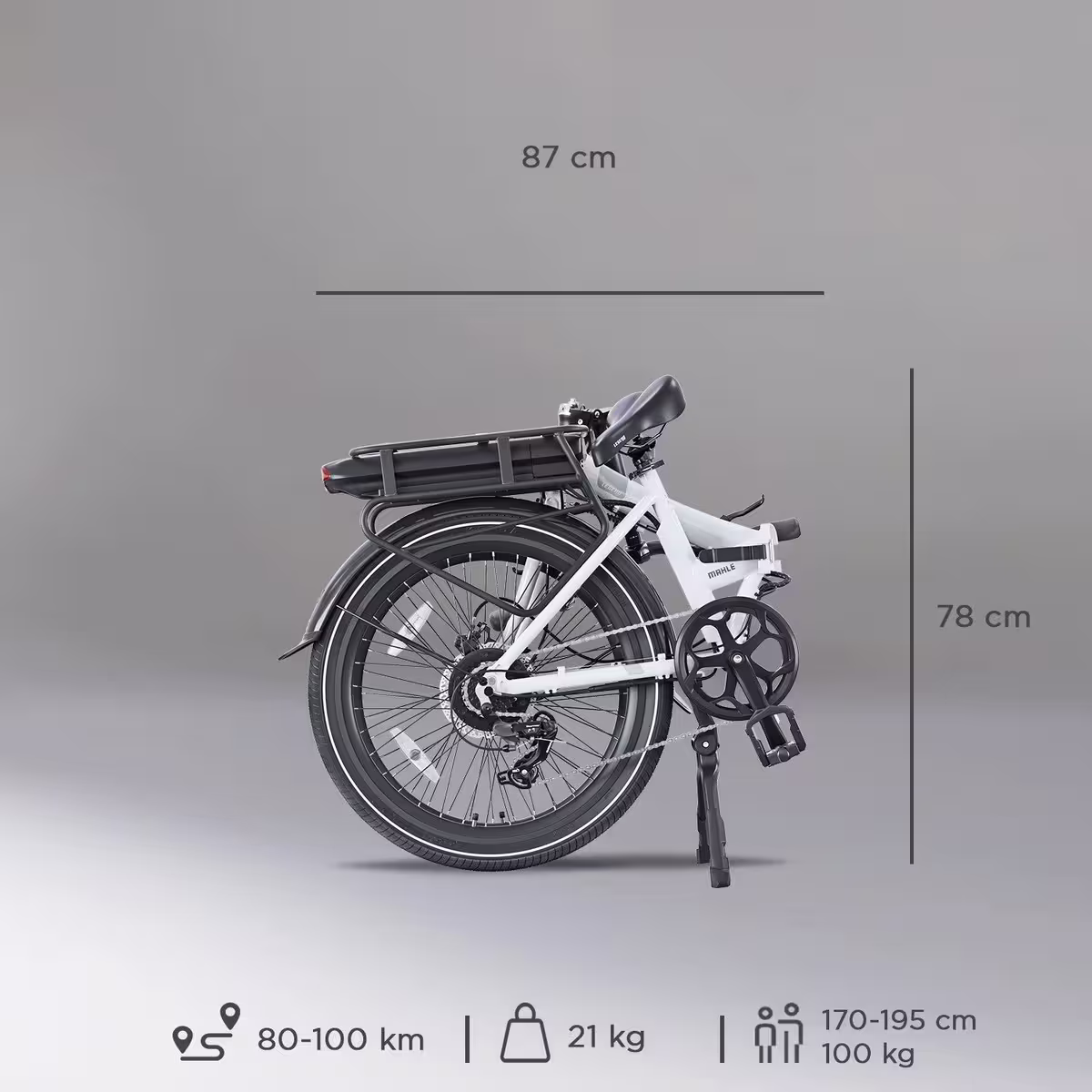 Vélo électrique pliant de ville, confort urbain et design. Ses pneus 24″ facilitent vos trajets quotidiens en ville. Système électrique MAHLE Smartbike.