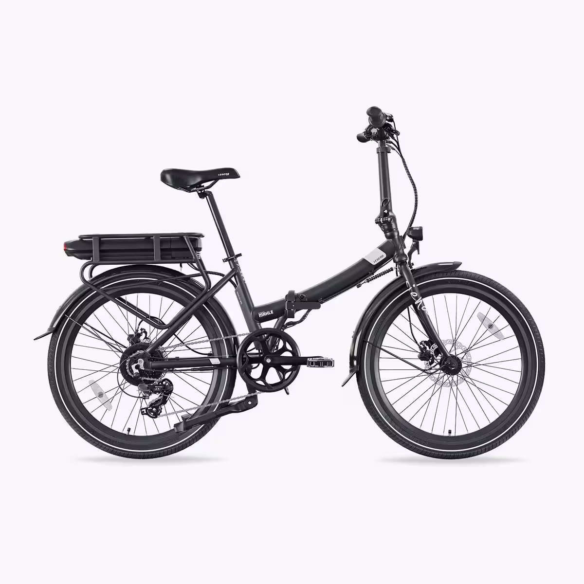 CONFORTABLE ET SÛRE Confort et sécurité remarquables grâce à sa selle ergonomique, son dérailleur Shimano à 7 vitesses, ses freins hydrauliques à disque pour un freinage à la fois efficace et progressif, et des roues de 24″ munies de pneus à effet « full suspension ». La taille intermédiaire de ces roues favorise une conduite extrêmement confortable sans compromettre la fonctionnalité d’un vélo pliant.