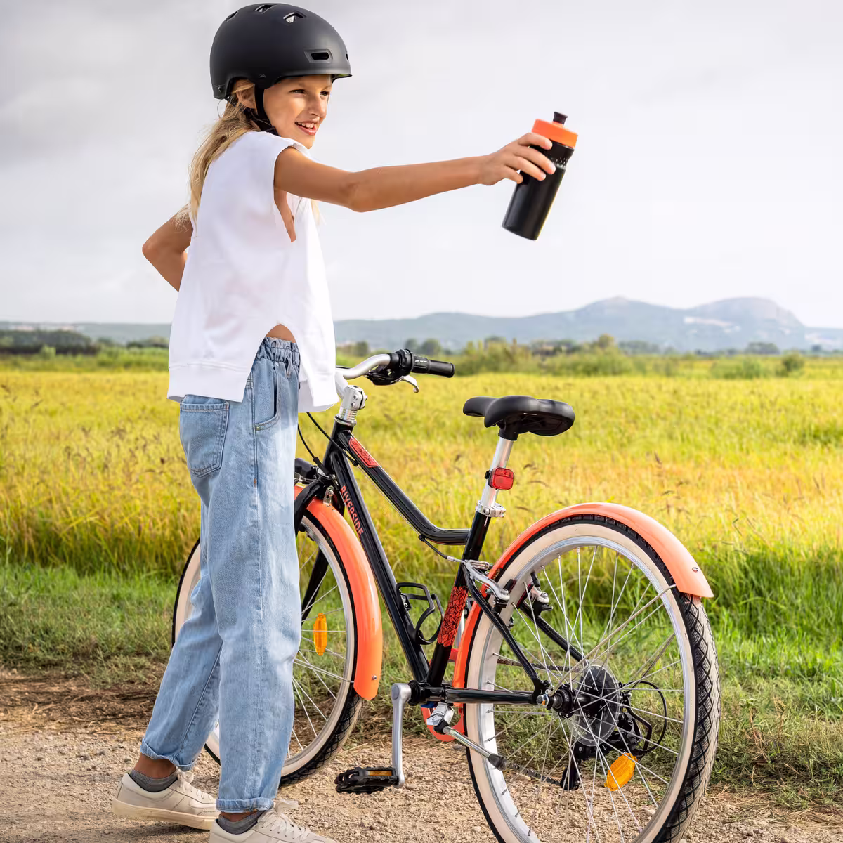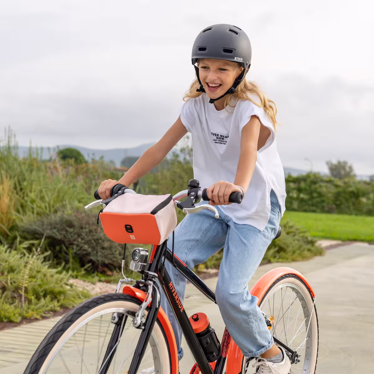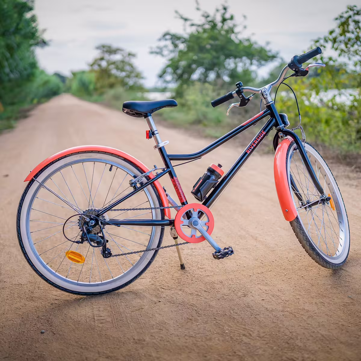 Pendant la balade, les garde-boue avant et arrière protègent des projections. La béquille permet de stationner le vélo facilement. Il arrive parfois que notre balade se prolonge et que l’on soit sur la route du retour alors que le soleil se couche. Pas de panique ! Avec sa lumière avant à LED fixe, vous êtes visibles et pouvez rentrer en toute sécurité.